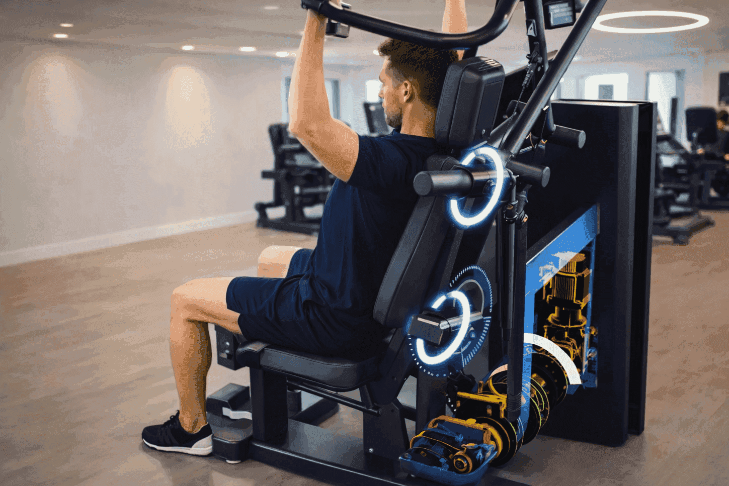 Når du setter deg i en maskin, justerer den seg automatisk til kroppen din og treningsnivået ditt. Sete, bevegelsesbane og motstand tilpasses slik at hver øvelse utføres riktig og effektivt.