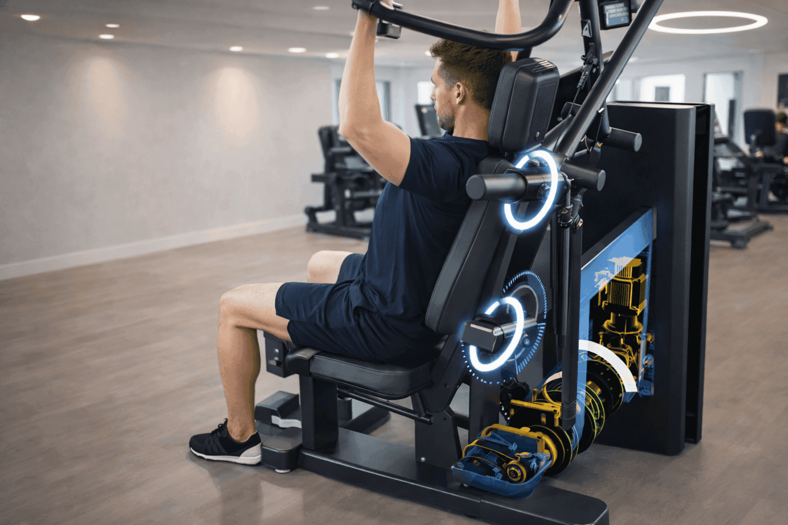 Når du setter deg i en maskin, justerer den seg automatisk til kroppen din og treningsnivået ditt. Sete, bevegelsesbane og motstand tilpasses slik at hver øvelse utføres riktig og effektivt.