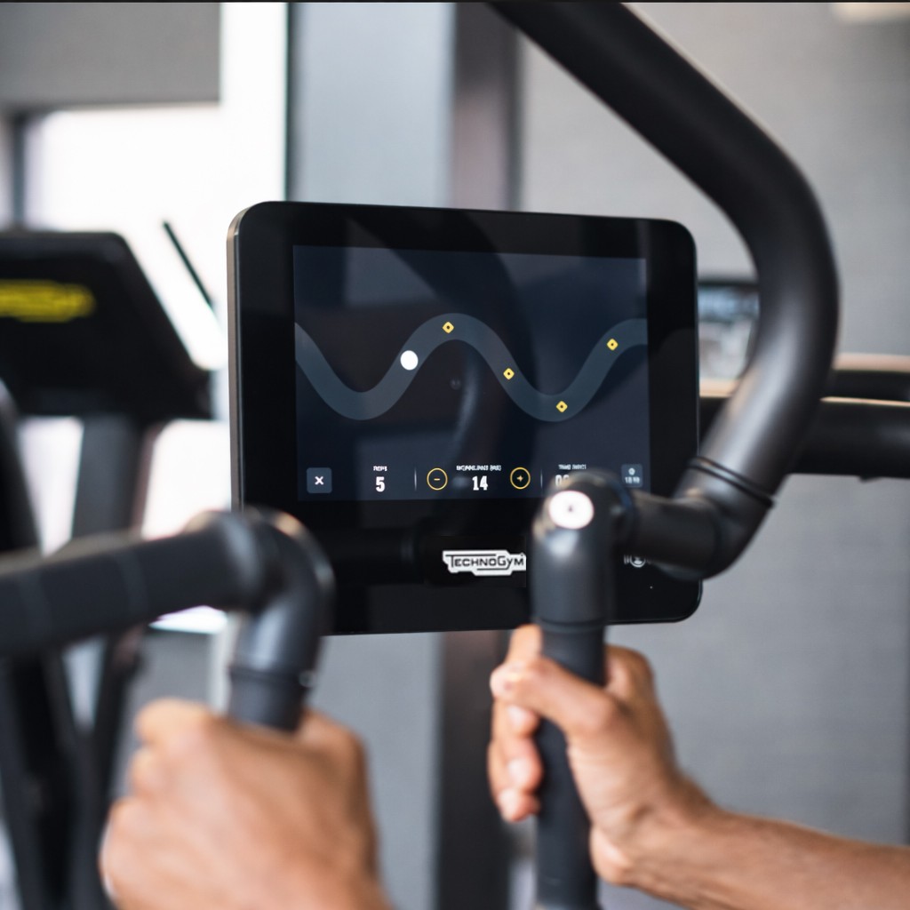 Du starter økten ved å logge deg inn på systemet, og maskinene stiller seg automatisk inn – sete, motstand og bevegelsesbane justeres uten at du trenger å gjøre noe selv.